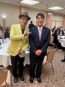 同学年である秋田銀行の芦田晃輔頭取と名刺交換できましたし、やくみつる(はた山ハッチ)氏と記念撮影もさせていただきました。大学時代、「パロ野球ニュース」を愛読していたんです。とても人気でして、私の他にもツーショット写真を希望する出席者がわんさかいました。