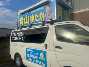 現職の申し合わせで遊説は午前9時~午後6時。そして、前回のブログで書いたように私は正午~午後2時は「拡声器不使用」としています。ですから、ただ選挙カーを流すだけの時間もあります。「なんで、声出さねなよ?」と不思議に思うかもしれませんが、そういうことだとご理解下さい!