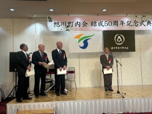 いつも大変お世話になっているお隣の旭川町内会が創設50周年を迎えました。一昨日は記念式典・祝賀会にご案内いただいたので出席しました。