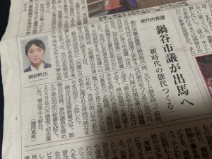 若ければいいってもんじゃありませんが、やはり「若さと変革に期待」という民意の表れです。鍋谷さんもその波に乗ることができるのか注目です。ちなみに能代市長選には元県議の吉方清彦氏も出馬表明しています。一騎打ちか?