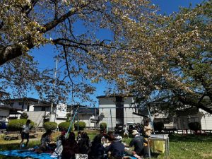 その後は花見。葉桜になっちゃいましたが十分です。1本だけ遅く咲くんですよね。ご近所さんとの交流は議員の基本、原点です。